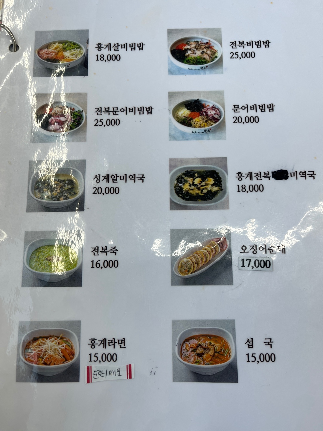 먼저 물회로 입맛을 돋우고, 섭국이나 홍게라면으로 속을 개운하게 만들고, 오징어 순대를 반찬겸으로 주문해서 먹어보세요! 후회하지 않으실 겁니다. 참고로 우리 가족은 전복죽을 추가 포장해서 그 다음날 아침에 아침식사로 먹었어요-